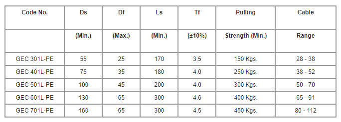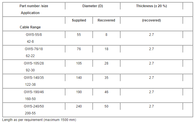 - Special Relief valved End Caps (RV) available for degassing application in High Voltage Power cables.